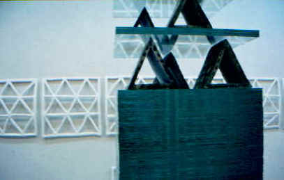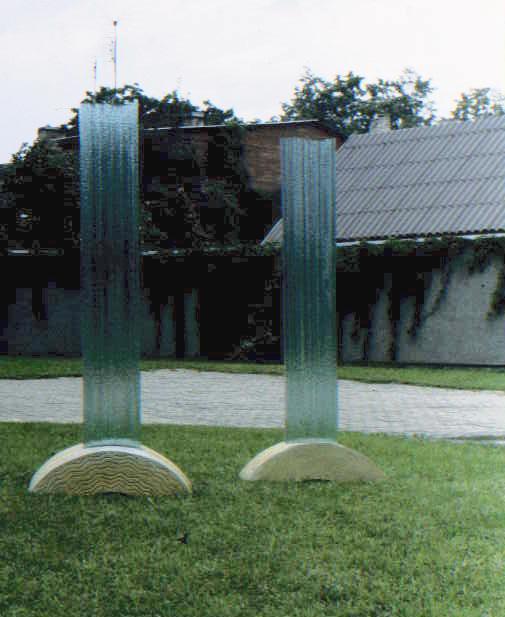 Cięte szkło 50x50 x200 cm i elementy ceramiczne.