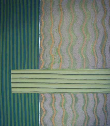 "Mostki" akryl + piasek na płótnie 60x70 cm